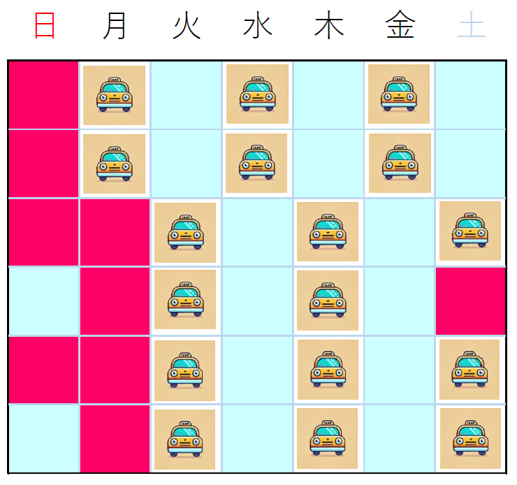 ラッキータクシーのシフトは以下の通り